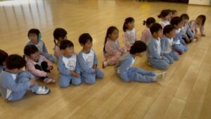 今回は来年度年少さんに進級する、すみれ組さんも年少さんと同じ時間で参加させていただきました。最初は「ドキドキするなー」「わからない…」と心配していたすみれさんのお友達も、いざ始まると笑顔で過ごせていました♪