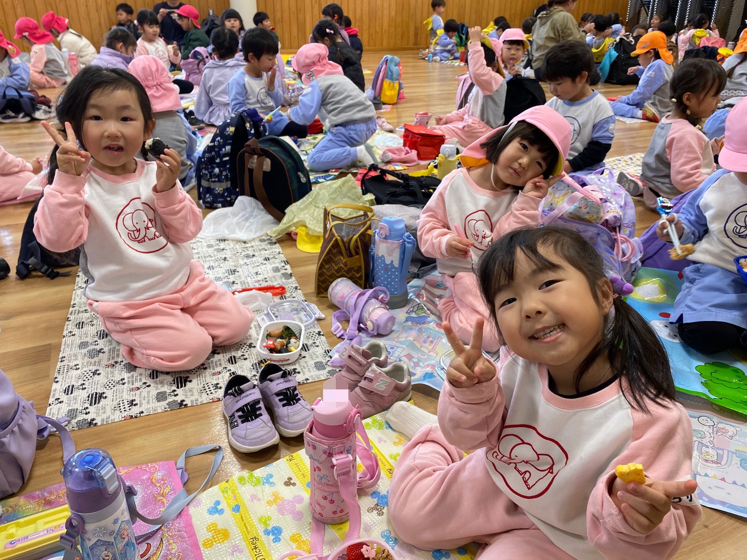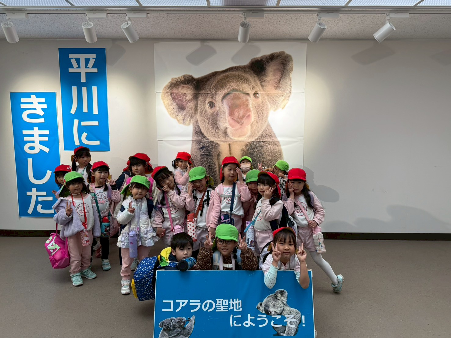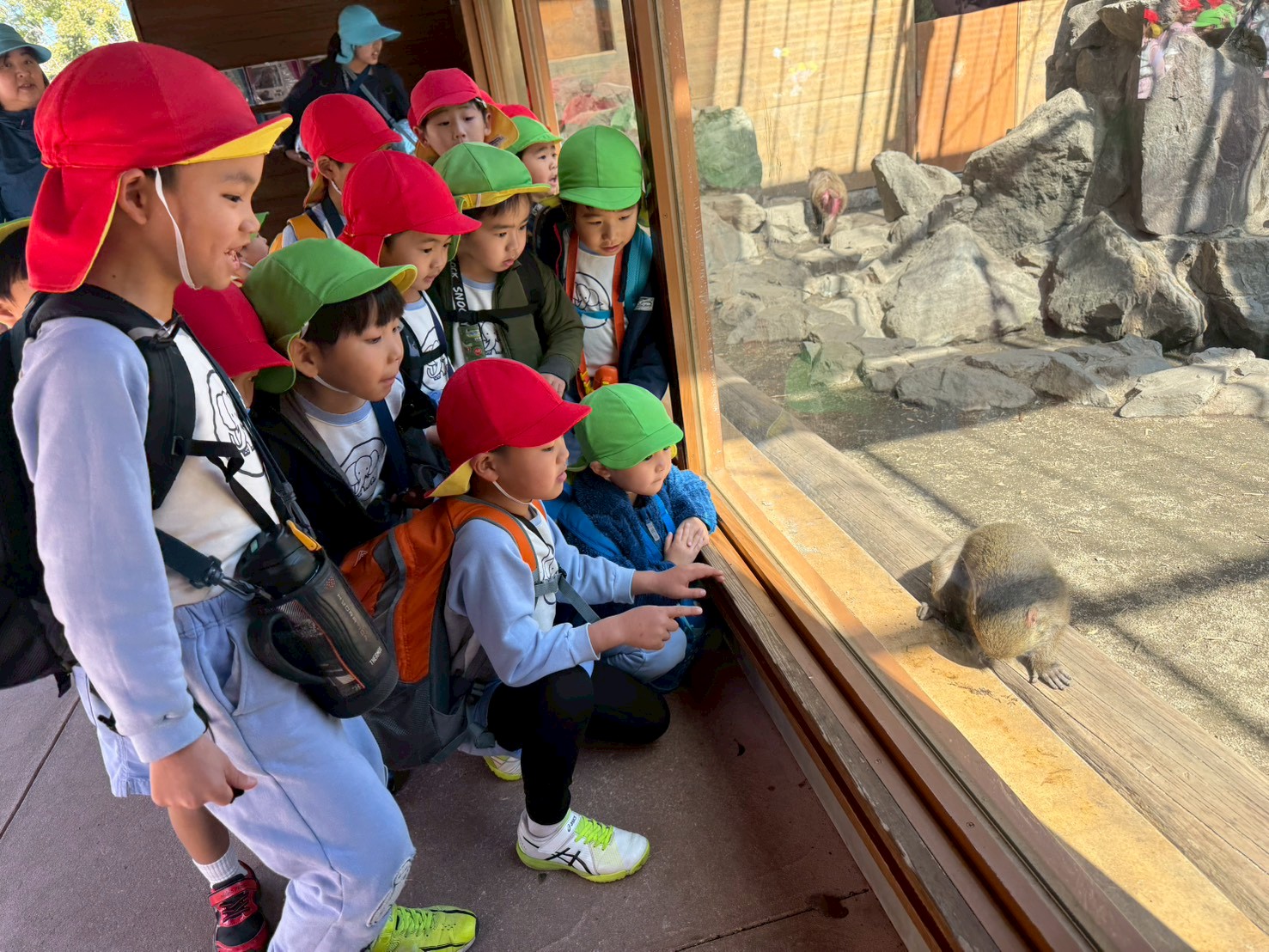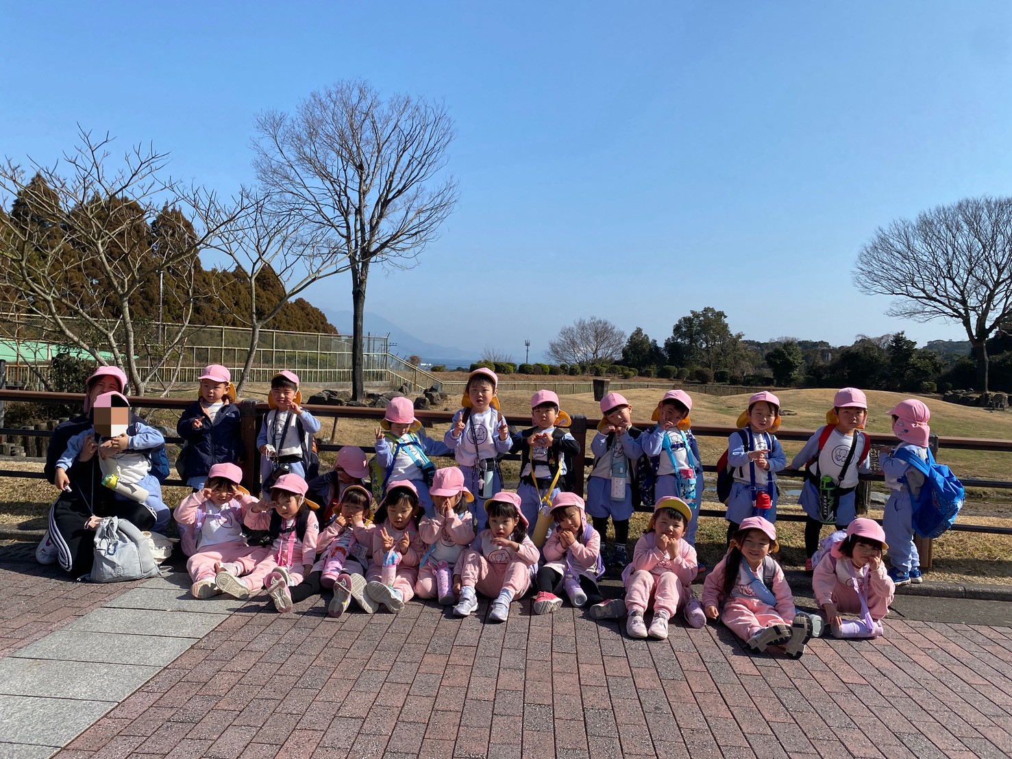 動物園で集合写真を撮影し、おいしいお弁当とおやつを食べて動物さんの見学に張り切って出発しました!