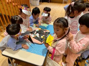 紙製のお金のやり取りも行いながら、自分たちが作った商品が売れる喜びと、欲しいものを自分で買う楽しさを味わった子どもたちでした♡