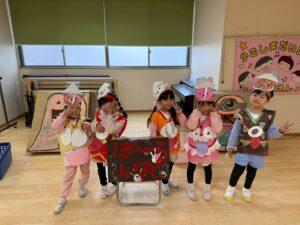 怖い雰囲気が出るように、年長さん全員で演じながらミニゲームを進めてくれました☆