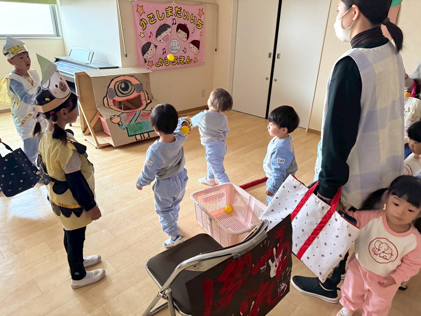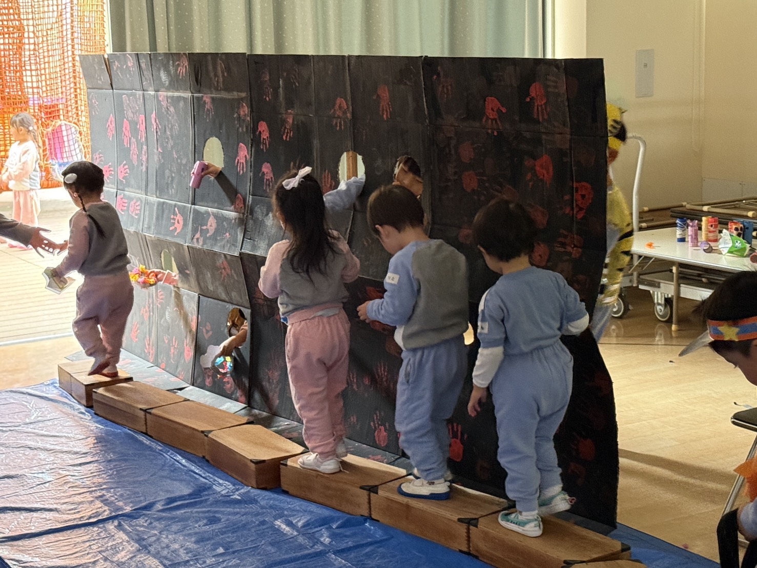 広いゆうぎ室をいっぱいに使ったおばけやしき。