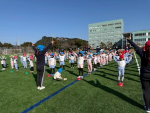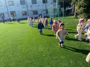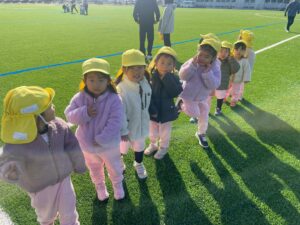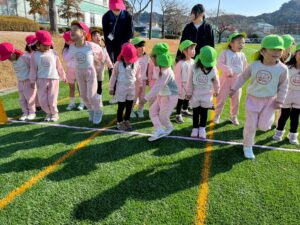 寒い日の練習もクラスのお友達と一緒に身体を動かして、『一等賞体操』も元気いっぱい踊ることができました。