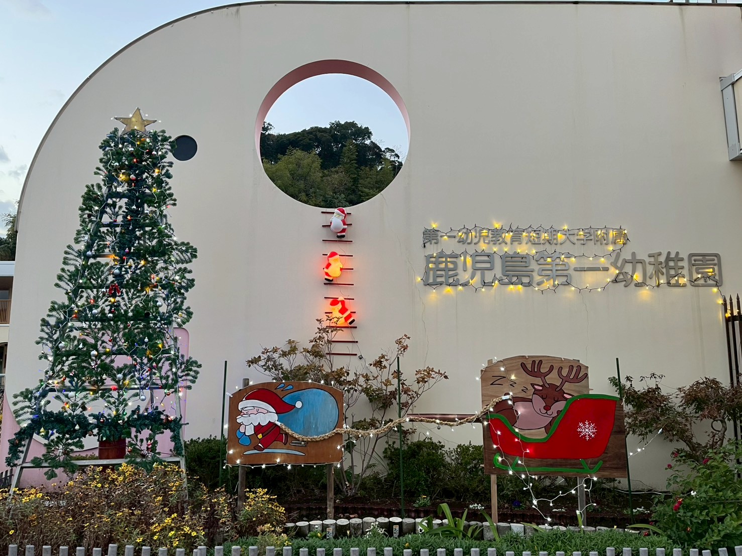 また、園の前には冬の訪れを感じられるイルミネーションも点灯し始めました。ぞうさんのモニュメントはクリスマス仕様になりサンタさんやキラキラ光る灯りに、子どもたちも思わずにっこり。帰り道には「きれい〜!」という声が聞こえてきました。