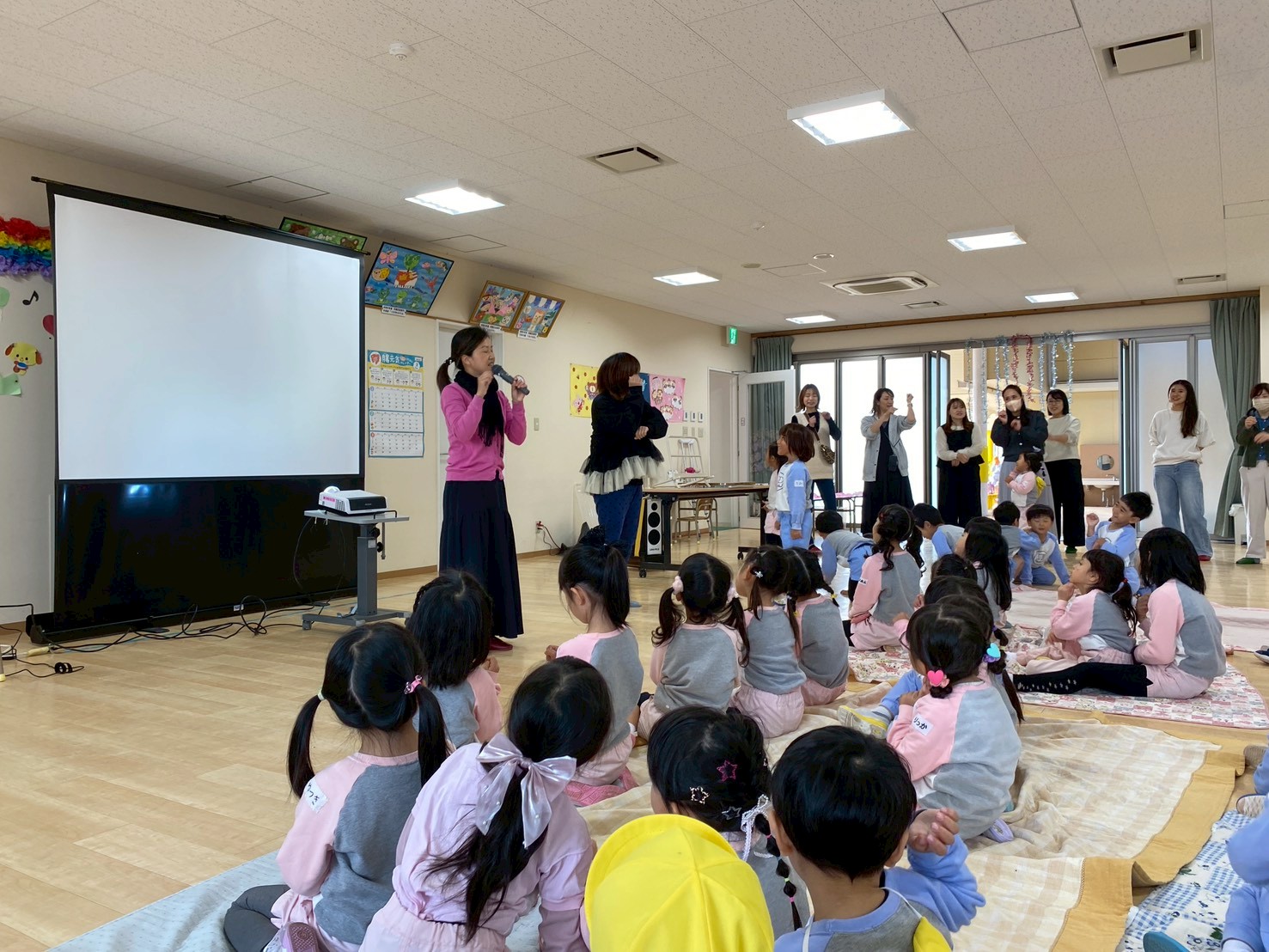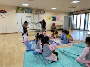 季節に合わせたお話や指遊びなどお母様方が一生懸命考え、子どもたちも楽しい時間を過ごすことができました。
