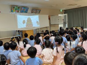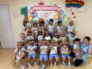 本園では、毎月月初めの金曜日に、その月に生まれたお友達をお祝いするお誕生会を行っています。