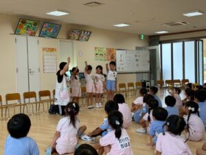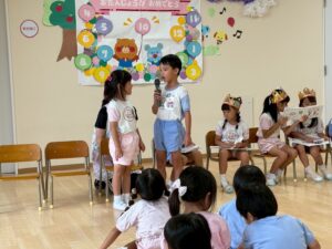 毎月のお誕生会では、年長さんが司会を務めてくれ、お誕生児さんにインタビューをしています🎤